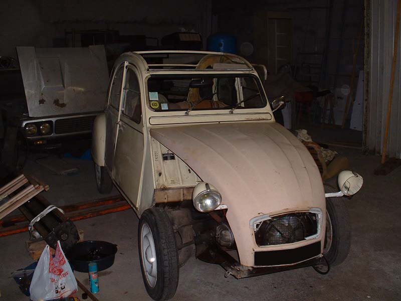 C'est en Août 2005, grâce à Régis (le papa de ma chérie), q'une opportunité s'est présentée à moi et j'ai ainsi acquis une seconde 2CV. C'est une 2CV 6 Spéciale de 1981. Une chance car elle était en assez bon état, mis à part le fait que le moteur soit bloqué et que le planché pédale soit à changer. Pour commencer, j'entrepris donc le démontage de son moteur puis effectua un nettoyage complet de celui-ci avec un changement de segmentation. Après une semaine de démontage, nettoyage et remontage, celui-ci redemarra comme si il sortait, en fait, d'une longue sièste.