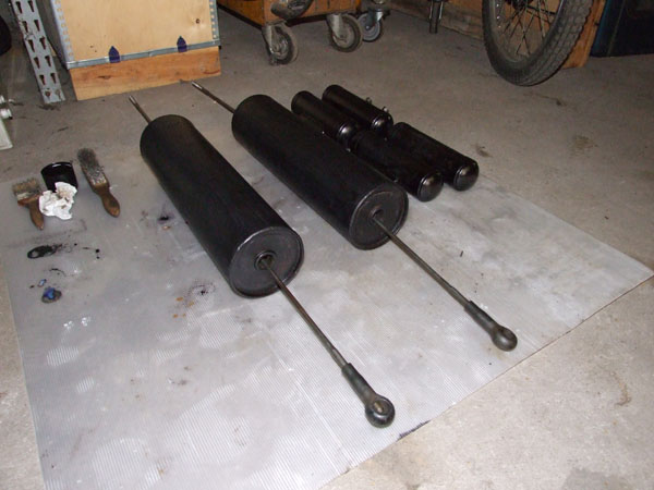 Nous commençons a brosser, à blanc, les éléments du chassis (Pots de suspensions, trains, etc...)