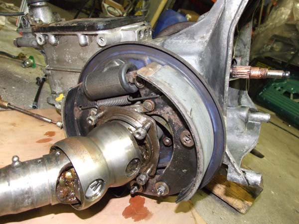 Le nettoyage de la boîte de vitesse est effectué. Nous en profiterons pour repeindre le couvercle du dessus en noir et refaire, à neuf, tout le système de freinage (remplacement des cylindres de roues et des garnitures). Le système d'embrayage sera lui aussi remplacé par un neuf d'origine.