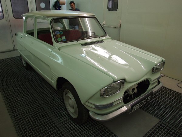 Ca y est, la restauration de l'Ami6 est terminée. Il aura fallu, environ, un an de travaux pour mener à bien cette restauration. Un grand merci à Régis (le beau-père) sans qui je n'aurais jamais réussi, qui m'a appris à souder et surtout qui m'a soutenu et remotivé quand j'avais le moral dans les chaussettes. Un grand merci aussi à Cyril pour le superbe travail de carrosserie qu'il a effectué ainsi qu'à Hervé sans qui la peinture en cabine n'aurait jamais pu être réalisée.